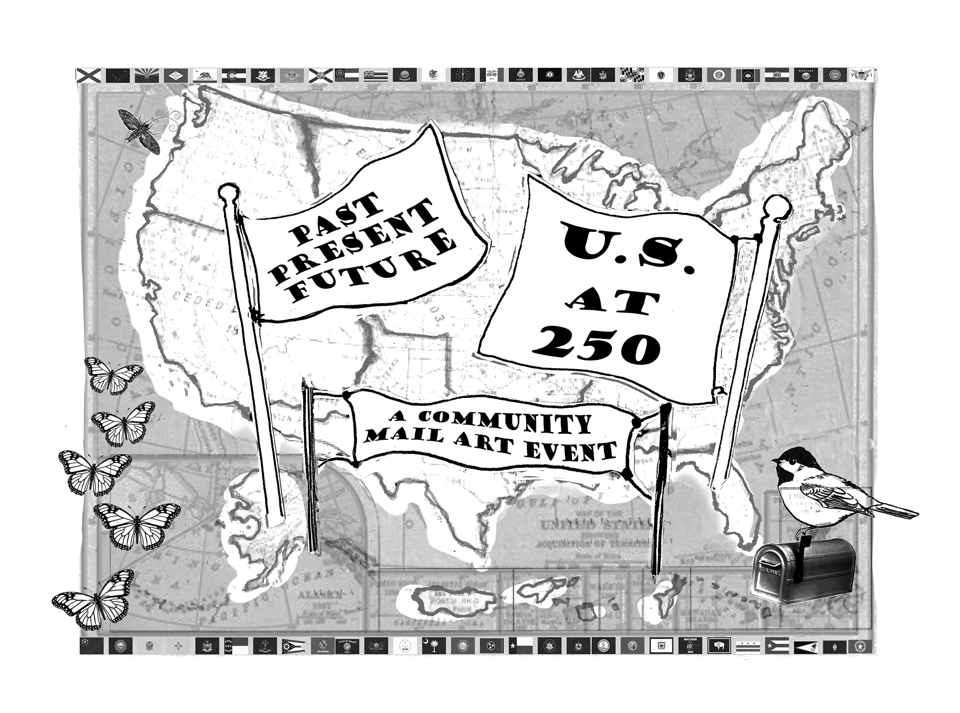 Send a postcard with your art and/or writing on the theme of the United States---past, present, future, on the occasion of the 250th anniversary of the signing of the Declaration of Independence.